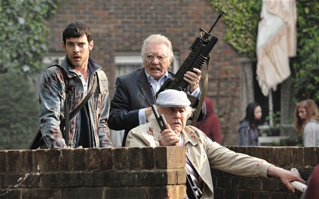 The film stars Michelle Ryan, Georgia King, Harry Treadaway and Rasmus Hardiker as the characters of the “main” plot (good hearted bank robbers that find the horde), which is countered by the more elderly cast of Alan Ford, Honor Blackman, Richard Blackman and others, who serve in the secondary story: the pensioners that are trapped in their home by the zombies. How was all this acting? Well, “not bad” is my verdict, but nor is it anything to write home about. The younger cast are serviceable, but it’s Alan Ford that shines. Mainly because I feel that the director’s instructions were “be yourself”, or “act like you did in Lock Stock and Two Smoking Barrels or Snatch“. He’s “cockney” personified… not an “‘orrible ****” like in his previous films (his words, not mine).